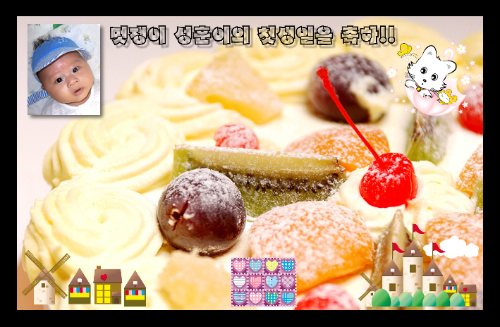 애기 넘 귀엽다 ㅋㅋㅋ~~~ 사닷닮았넹..^^& 케익도 내생일떄 케익보다 훨 이뻐~~~~