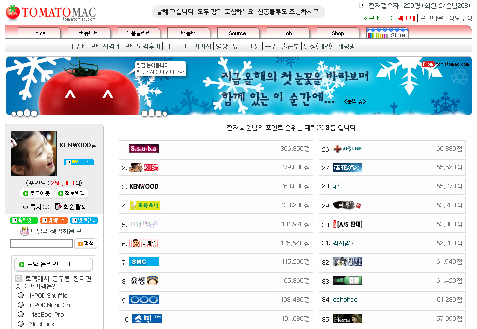우와;; 전 12등이요;; 올해 10위권 안으로 들어갈꺼에요.ㅎㅎ 인지도도 10권이여야 할텐데;;