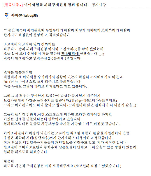 아이맥 얼룩현상-피해구제신청결과가 나왔네요