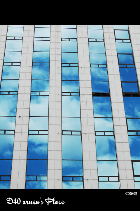 유리창에 비친 하늘..색감도 좋고
