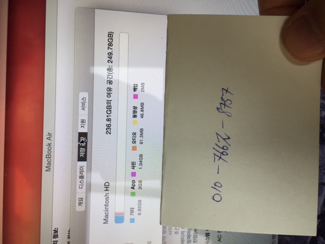 [사진추가] MD761KH/B(2014 맥북에어, 256G, 4G) S급 판매합니다.