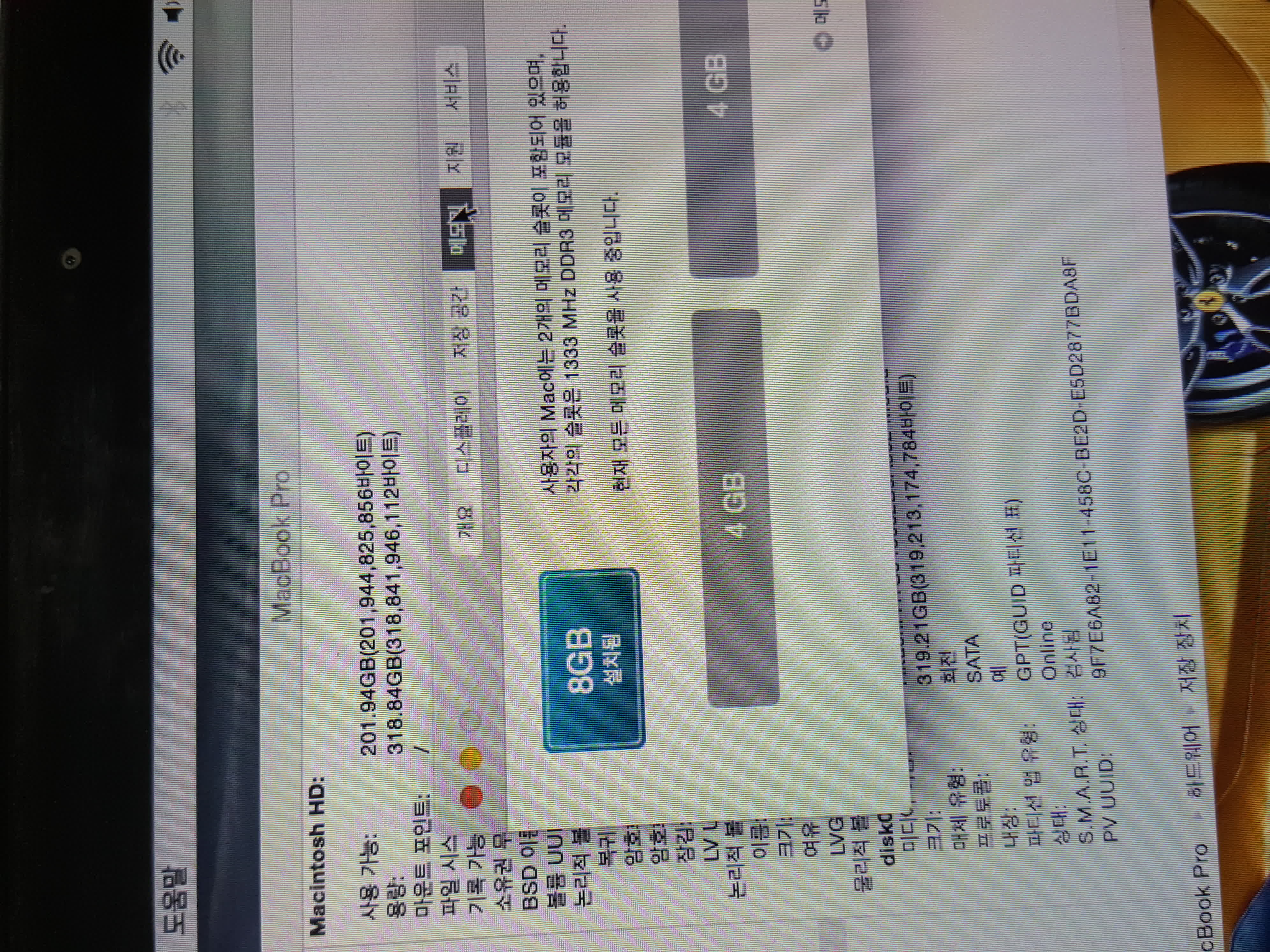 램은 8G로 업그레이드 했구요
