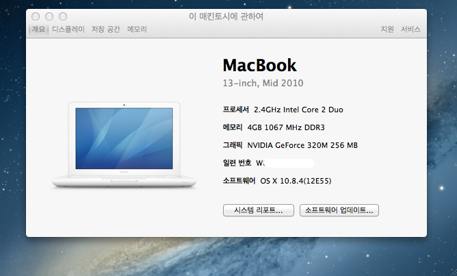 램이 DDR3램이 들어가는 2010년식 화이트맥북으로 최신OS 인 엘캐피탄으로도