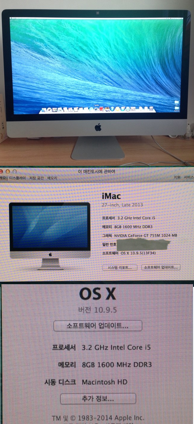 아이맥 사양은 첨부된사진 참고하세요.