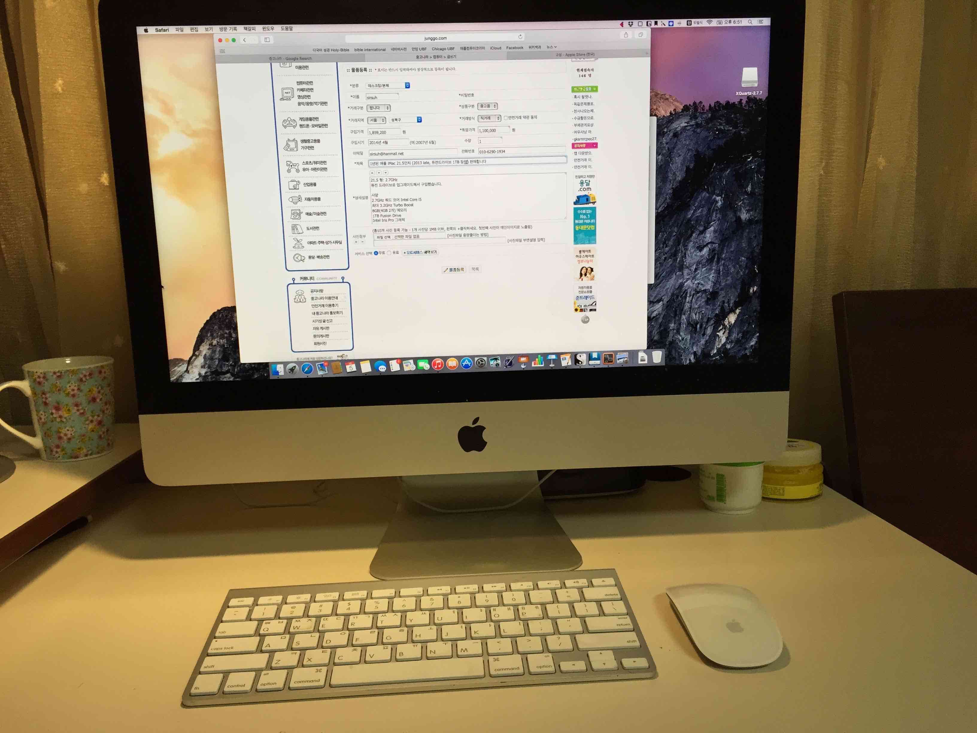 1년된 애플 iMac 21.5인치 (2013 late, 퓨전드라이브 1TB 장착) 판매합니다. 퓨전드라이브라 매우 빠릅니다.