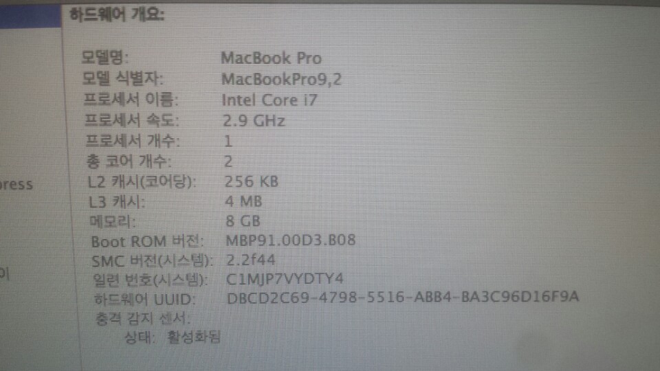 맥북 프로 13" 2013/1구매 290ghz i 7 팝니다