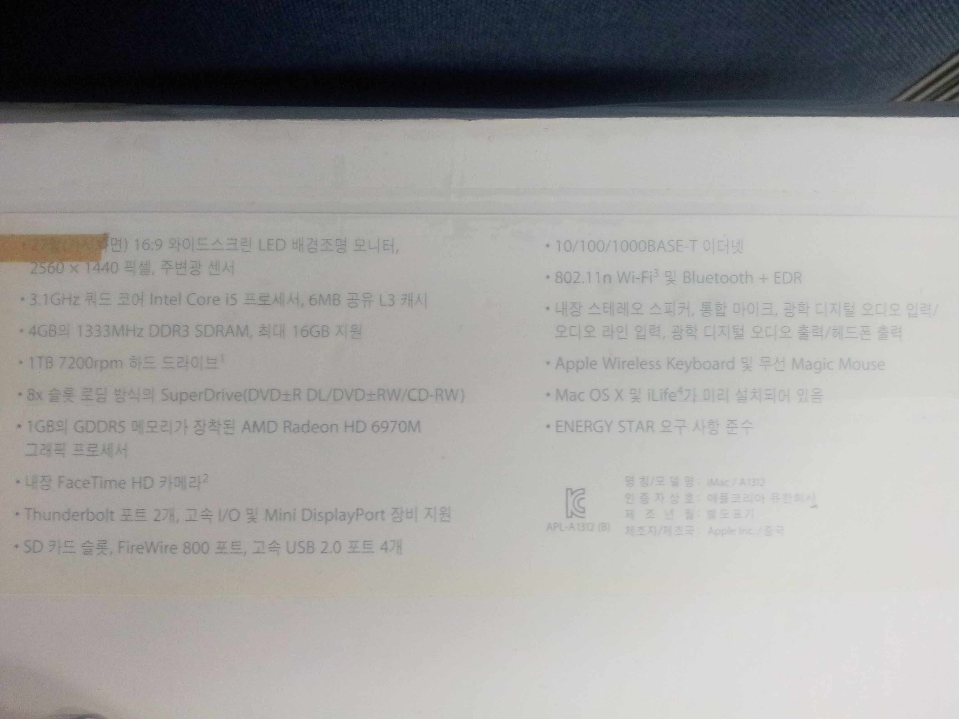 아이맥 27인치 팝니다.(2011년7월구매)