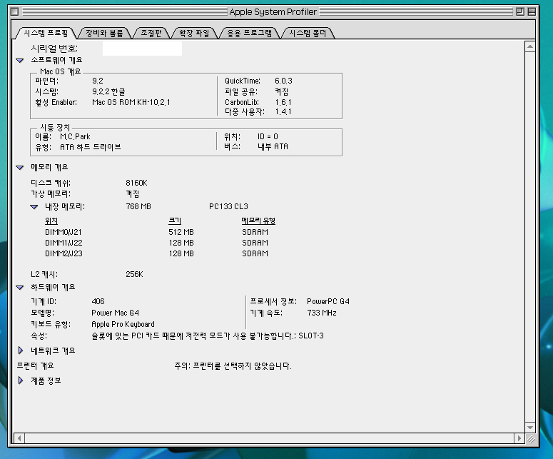 애플파워맥 G4 733 싱글 / 40GB 메모리 768MB