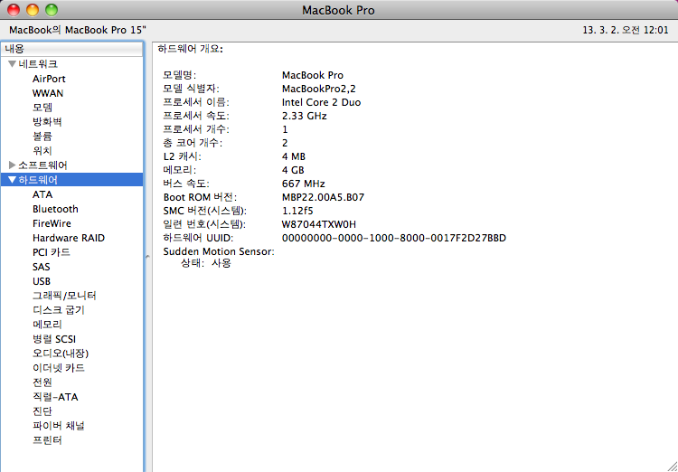 15인치 Core2Duo 2.33GHz 모델입니다.