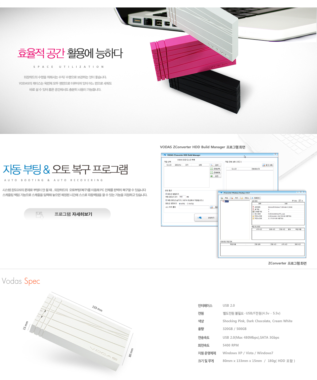VODAS 외장하드320G(백업및복구기능성하드)35,000원