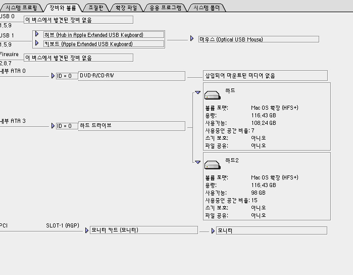 내장메모리:2기가, 하드:250기가,