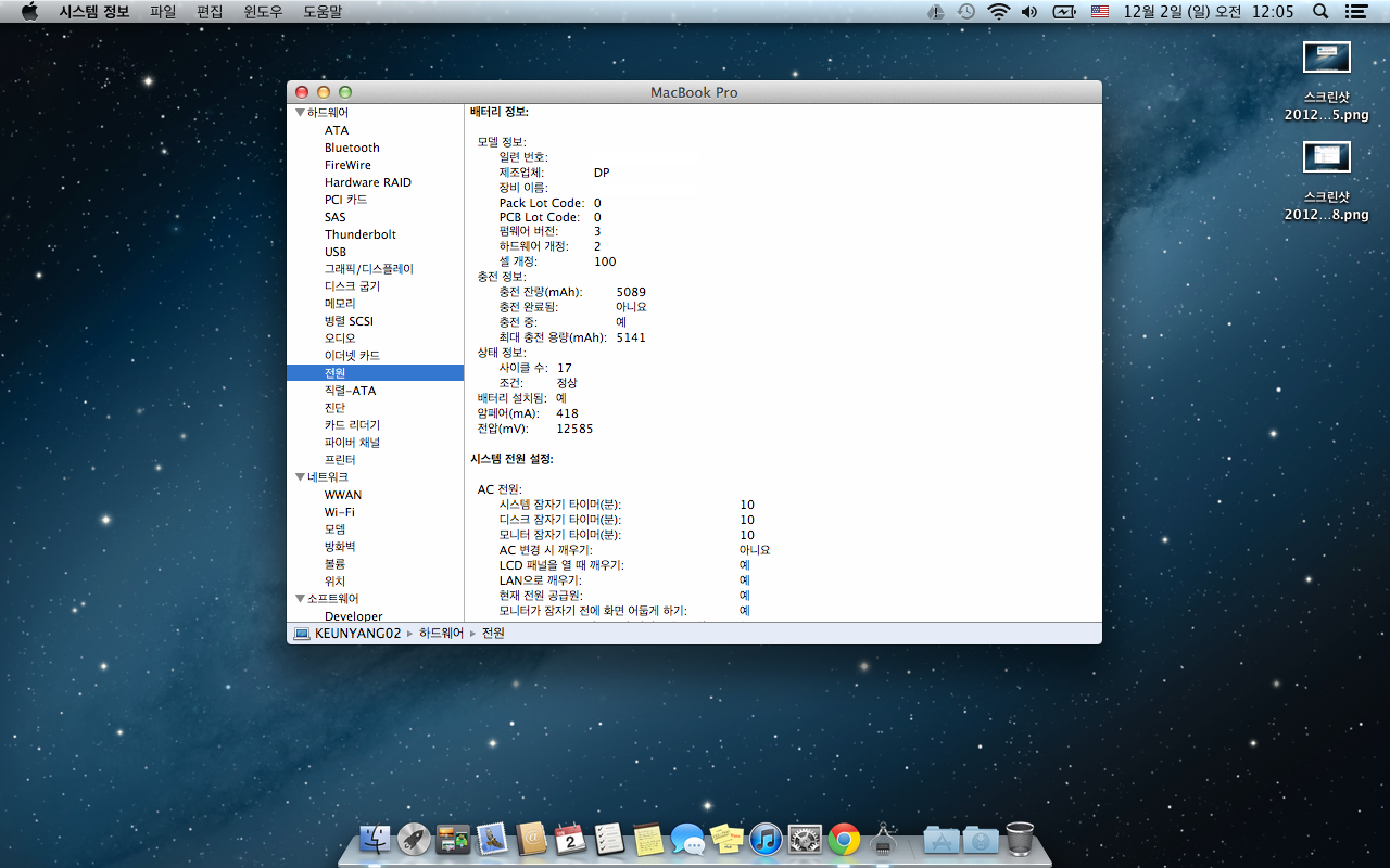 프로세스 : 2.53GHz Intel Core 2 Duo