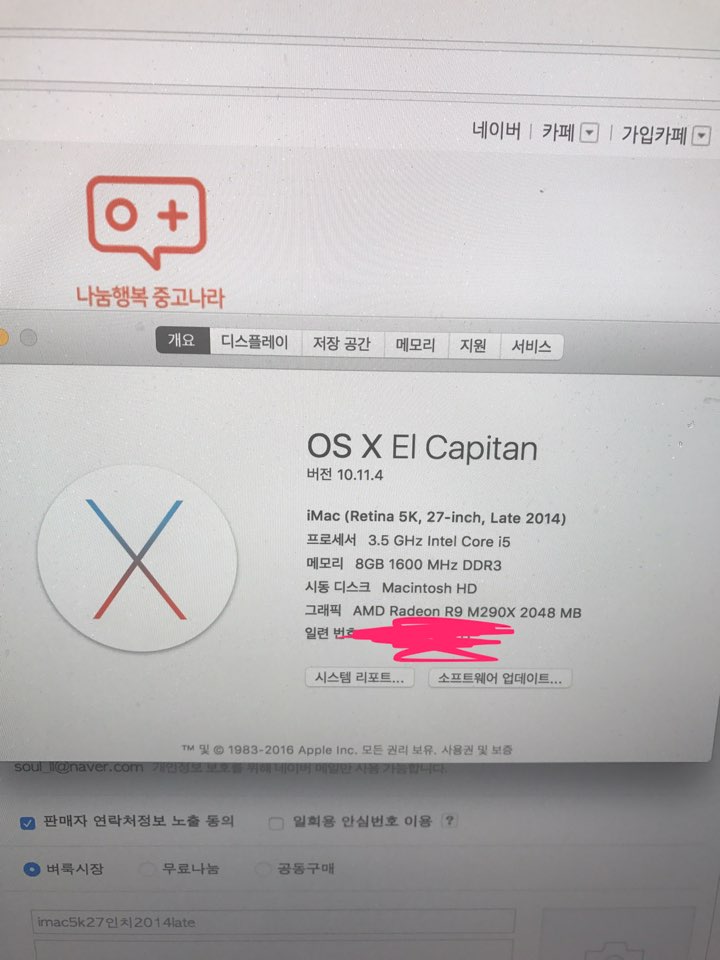 2015년 초여름에 구입한 2014 late버전 아이맥 27인치 5k 판매합니다.