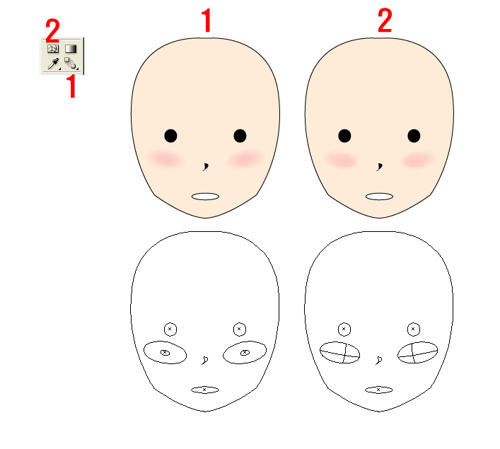 1번은 블랜드 툴로 큰타원+작은타원으로 색을 자연스레 옮겨가게 했구요.