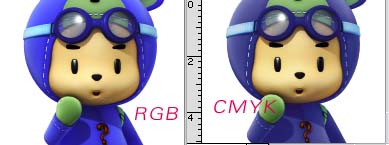 인쇄할려고 CMYK로 바꾸면 캐릭터가 거무튀튀... 죽은 캐릭터가 됩니다.... 올록볼록 효과도 죽고...