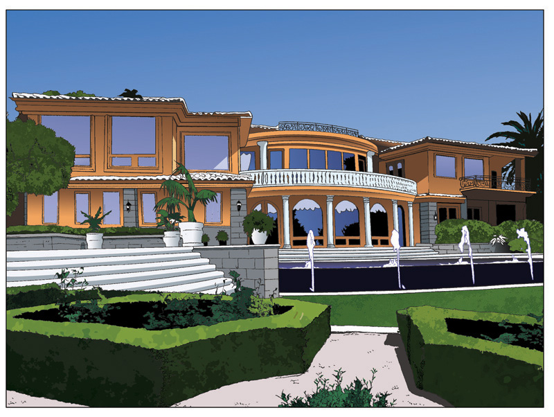 하지만 맨위 그림의 건물왼편을 보면 그라데이션이 매끄럽게 되어있어서 cutout만 사용한것같진 않습니다.