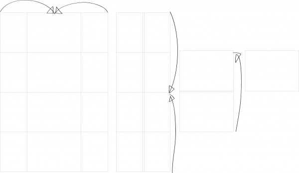 음 양쪽에서 가운데로 접혀들어가는 접지를 대문접지라고도 하긴하는데요 이건 가로세로로 여러번 접히는거라서 그림은 그려주시던가 직접 접어서 가져다 주시는 수밖에 없을 듯한데요 음 이런접지는 저도 안해봐서 접지하는곳에 문의하시는게 제일빠를 듯싶은데요.
