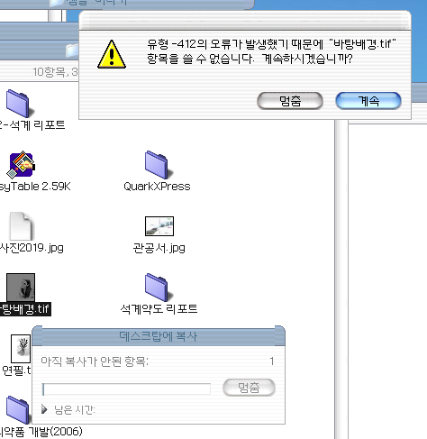 자꾸 화일이나 폴더를 복사하면 자꾸 유형412의 오류가 뜨는데