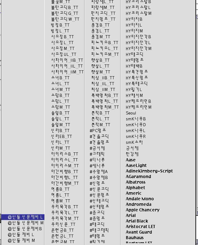 MC Font menu라는 유틸리티를 조절판에 넣으셔야 합니다. quark은 안 됨.