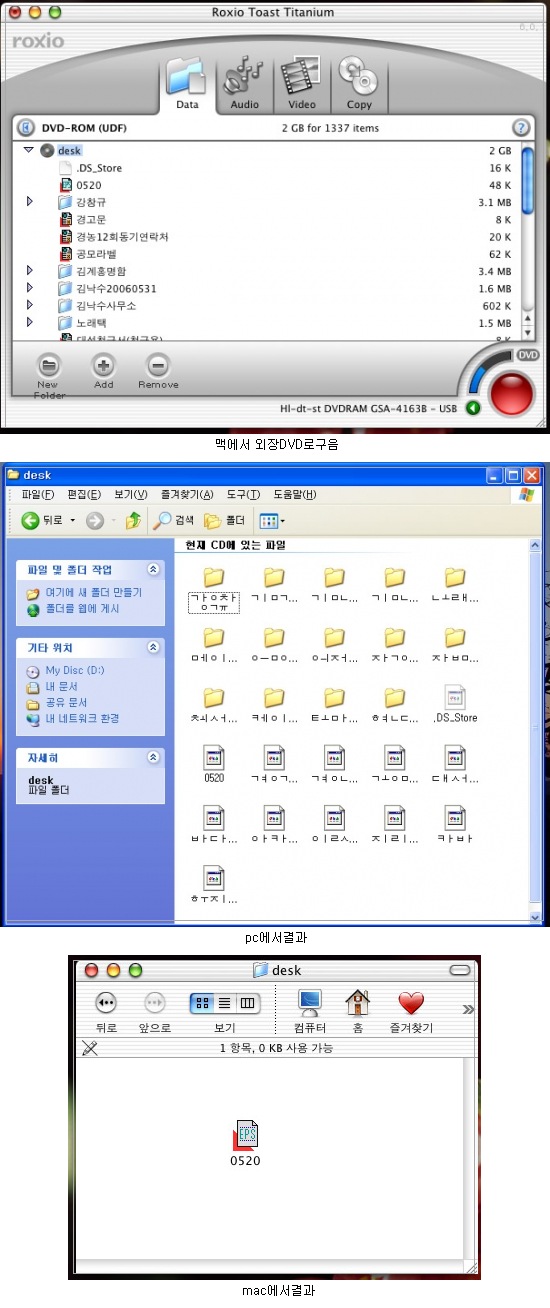 Mac Ony, Mac & PC 포맷은 CD에서만 해당 되는 내용이 아니고, DVD를 굽는 경우에도 해당이 되며, DVD-ROM (UDF)로 구우면 안 된다는 것을 말씀드립니다.