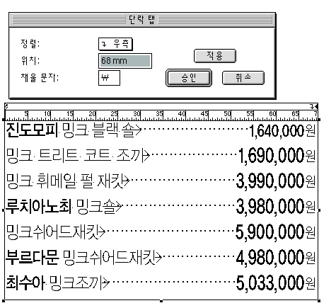 이런 간격의 채울문자는 특수문자에서 골라쓰는 것이 아니고 한양체나 윤체라면 그냥 키보드 상태에서 option+Y 를 하시면 됩니다.