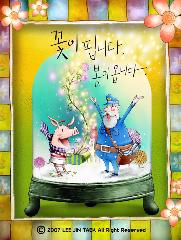 미 - 파란 산타클로스라기 보다는... 산타클로스처럼 봄소식을 선물하는 집배원 할아버지 인데...언뜻 산타클로스 같죠?? ㅎㅎㅎ 샤 - 유리관이라닛!! (살벌하게시리...^ ^;;) 흔들면 눈이 내리는 아이스볼이야... 그안에 사는 꼬마돼지소녀에게 봄소식을 전하는 집배원 할아버지... 아 - 봄의 기분이 느껴지시나요?? 그렇다면 저도 대만족!!!!! 켄 - 봄소식 전하는 집배원 할아버지를 희정이네 집에도 보내 드려야 겠네요...ㅎㅎㅎ