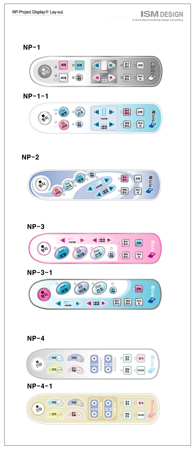 갠적으로 정지 버튼이 전원버튼보다 크고 세정비데건조등등의 버튼옆에 붙어 있어야 편리함. 정지 시키려다 전원버튼 눌러 세팅된거 죄다 날라감. 위에서 아래까지 잘 나가다가 맨 마지막에 정지가 전원으로 ... 디자인은 마지막께 이뿐데...