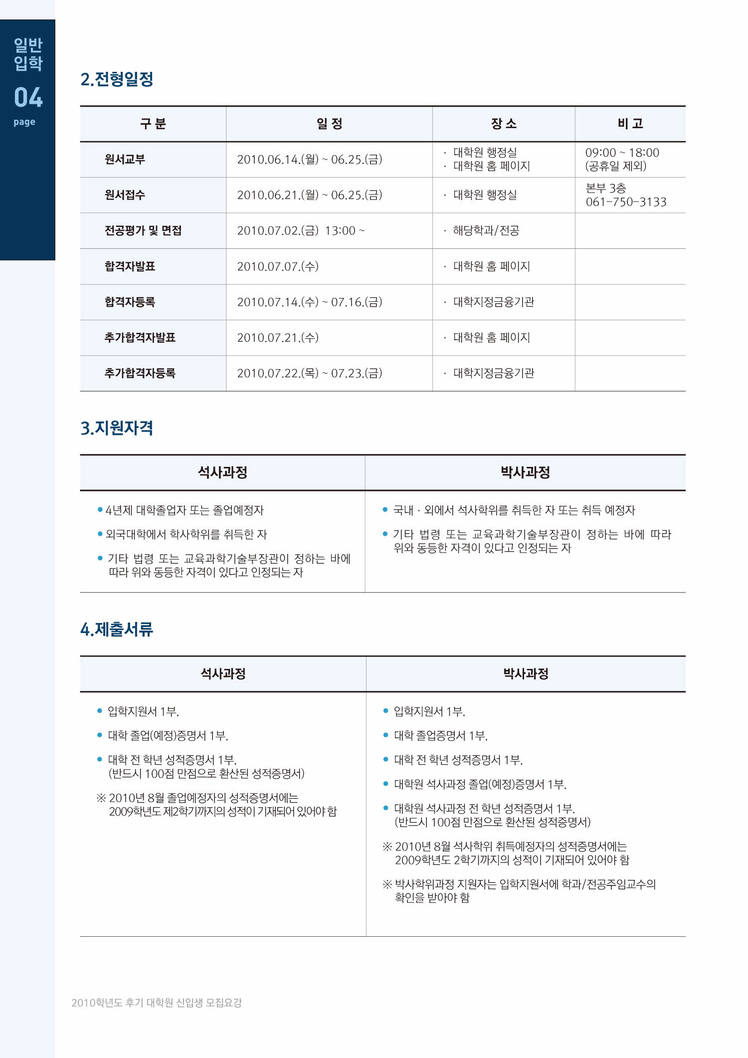 2010 순천대학교 대학원 모집요강