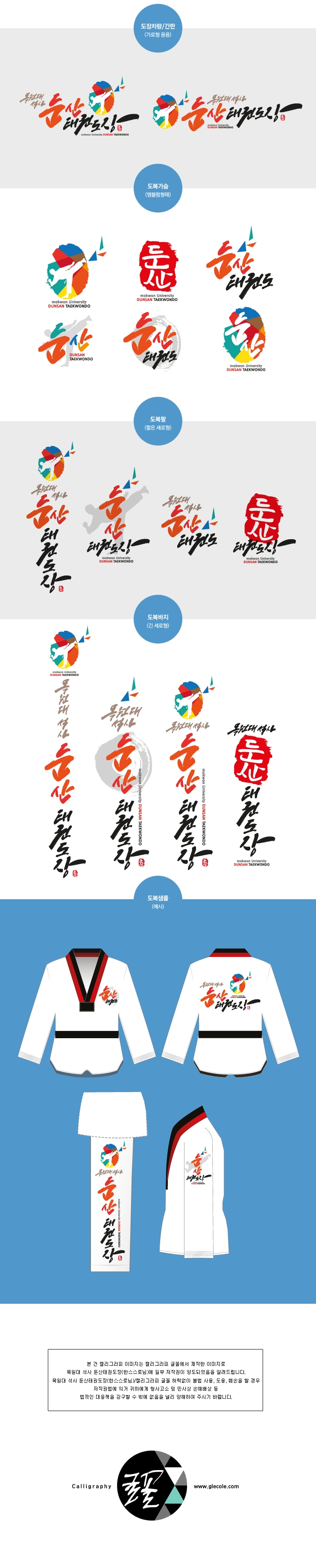 목원대 석사 둔산태권도장 간판, 마크, 기본형 캘리그라피 및 응용파일 제작