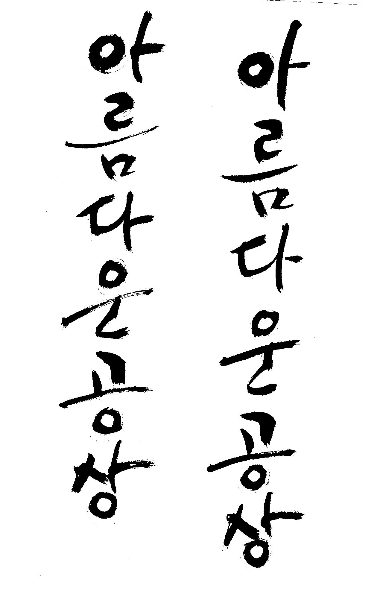 캘리부탁드려도 될까요?^^ 김철호 일반 0 6826 2009.01.14 21:43 > > > > > > > > > 안녕하세요 > > > 염치불구하고 부탁드릴려구요 > > > 제가 책표지를 맞게되었습니다. > > > 그래서 거기에 쓸캘리를 부탁하려고 합니다. > > > 제목은 "아름다운 공상"입니다. > > > (가로형,세로형 둘 다 해주시면 좋겠습니다.-희망사항) > > > 멋진 봇글씨로 부탁드립니다. > > > > > > 다들 추우신데 감기조심하시구요 > > > 이렇게 부탁드려도될지....조심스럽네요 > > > > > > > 유용하게 쓰세요... > > >