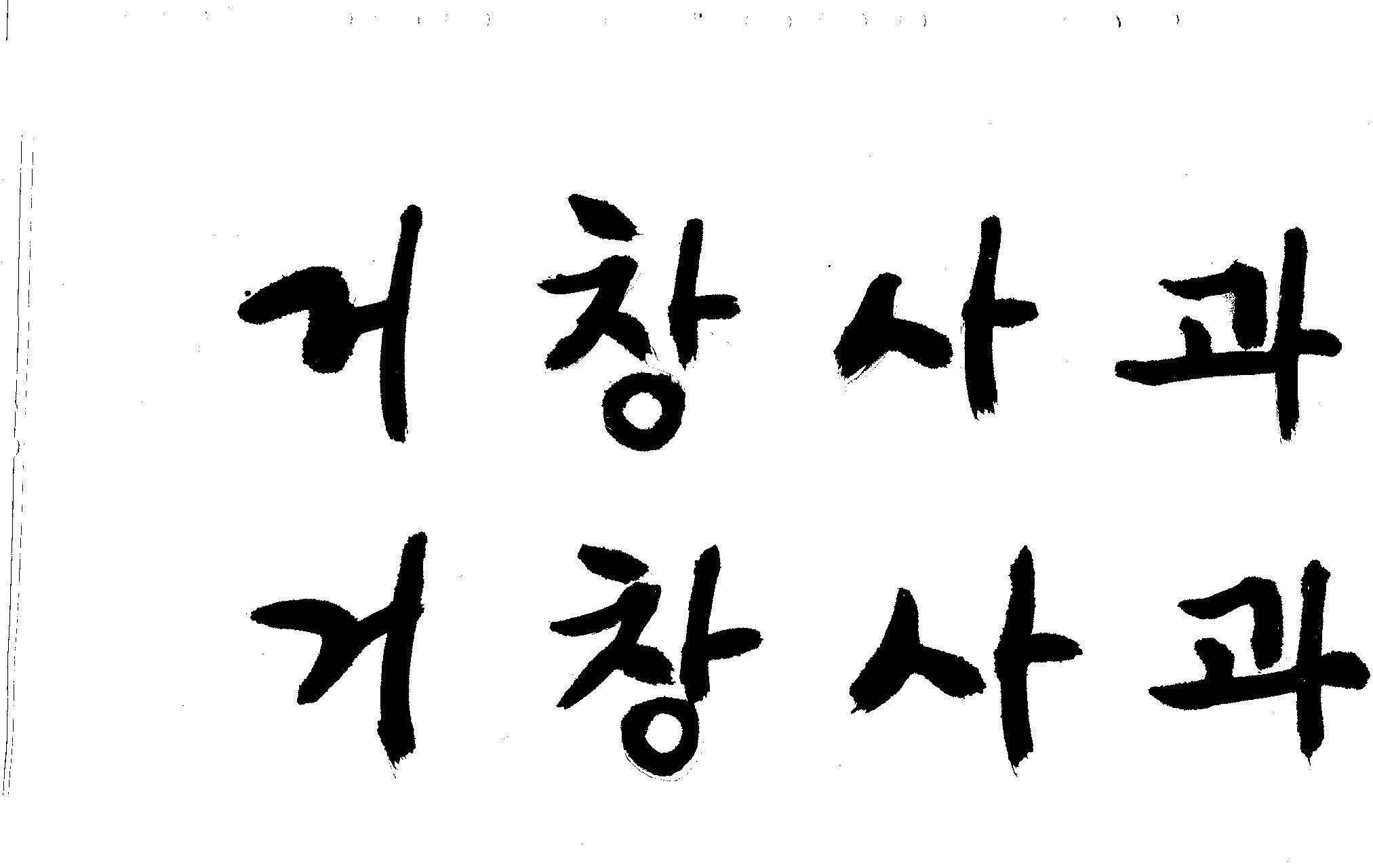 캘리 부탁드립니다. 김철호 일반 1 9357 2008.12.29 16:03 > > > > > 안녕하세요? > > 전문대 졸업하고 편집일 하다가 > > 얼마전에 패키지쪽으로 이직했습니다. > > '거창사과'라고 박스 디자인 주문이 왔는데요 > > 일반적인 서체를 사용하니 기존 박스랑 별 차이가 없네요 > > 많이 바쁘시겠지만 '거창사과' 캘리 부탁드립니다. > > > 유용하게 쓰시길.. >